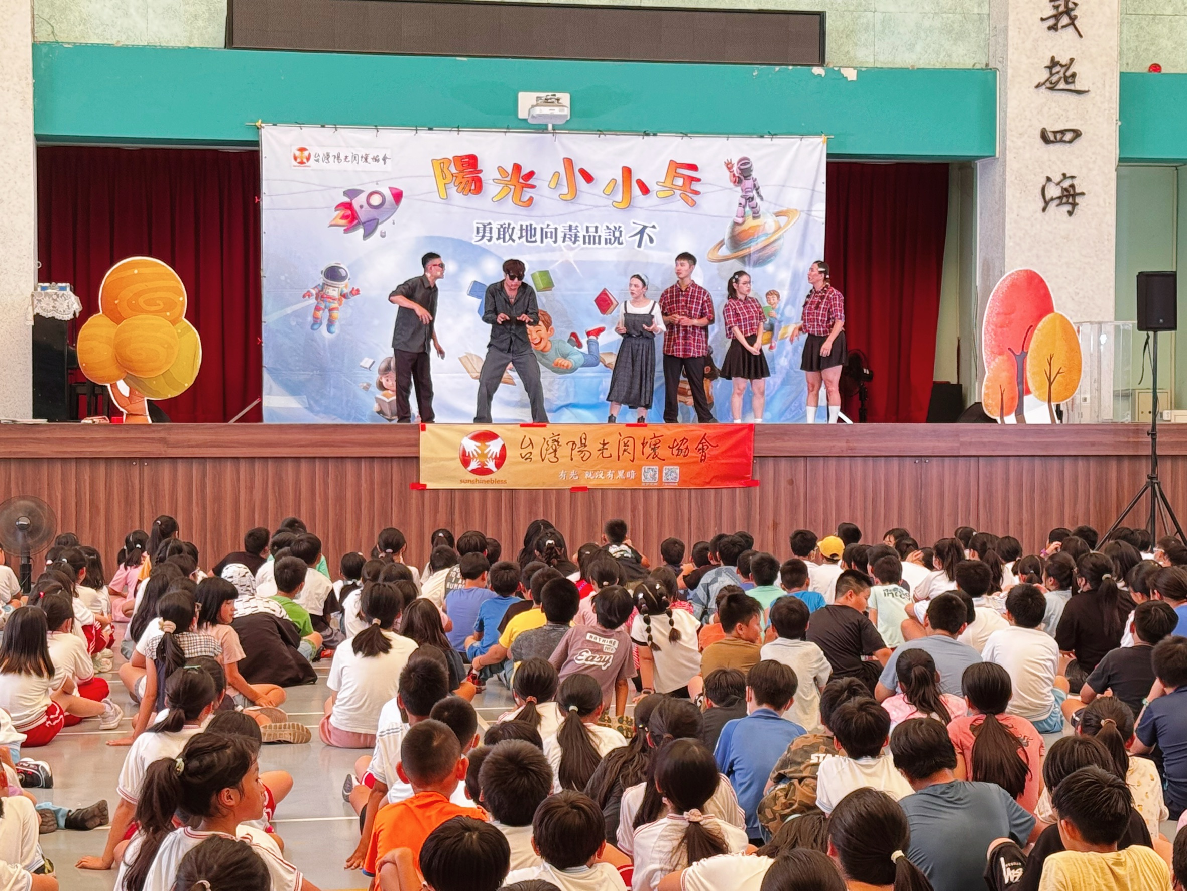 由協會推動的「陽光小小兵」反毒舞台劇,今天來到了桃園市武漢國小,舉行第180場校園巡演。